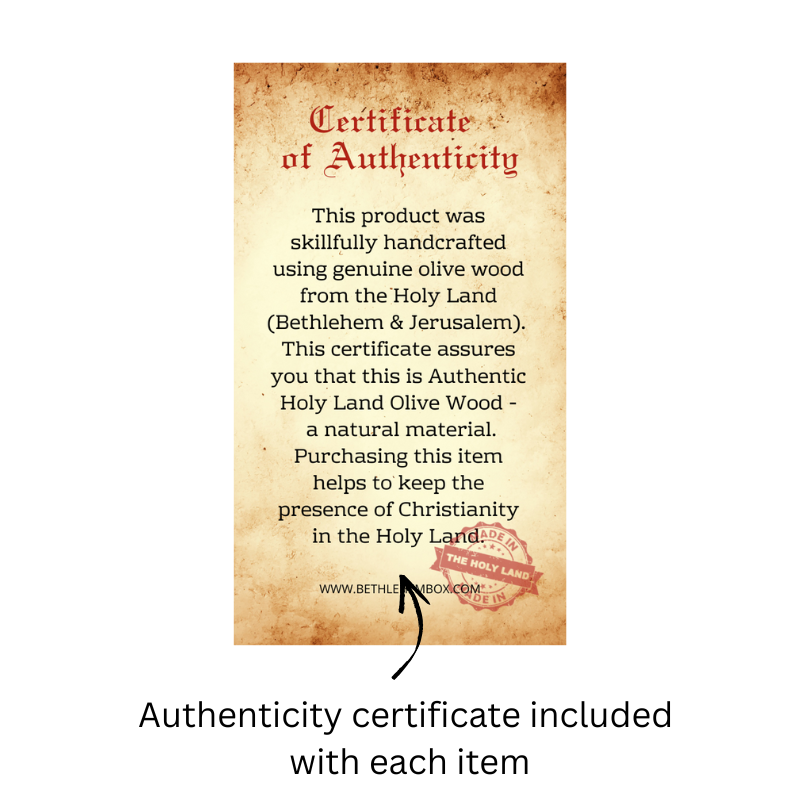 BY PURCHASING THIS ITEM, YOU ARE SUPPORTING CHRISTIAN ARTISANS AND THEIR FAMILIES LIVING IN THE HOLY LAND